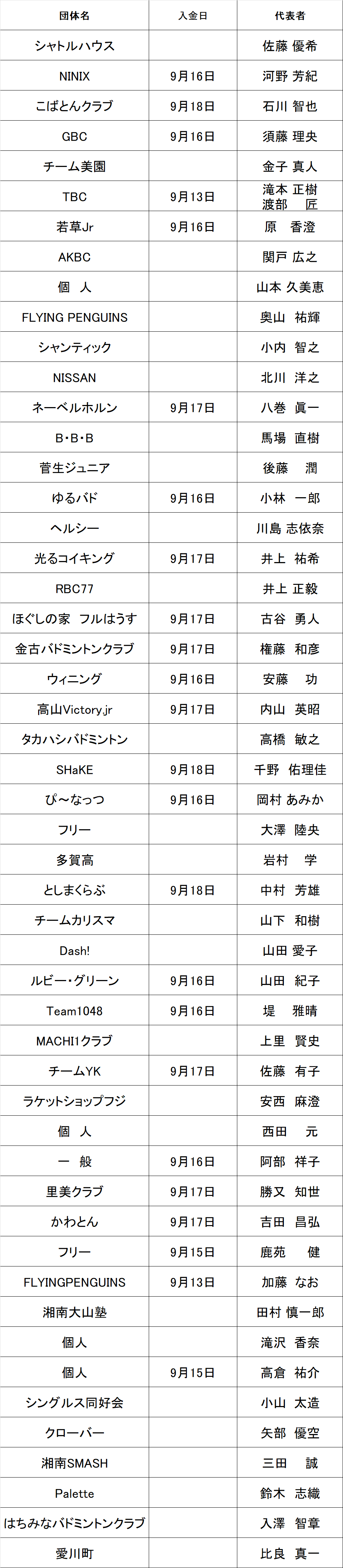 参加費の振込みは9月13日〜9月27日で御願いします。 未振り込みの場合は申込を取り消します。