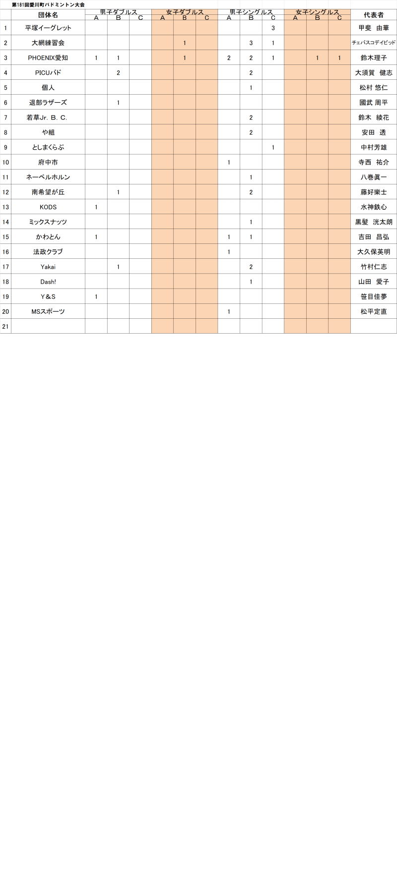 口座名 : 愛川町バドミントン協会 県央愛川農協 (5153) 高峰支所(004) 口座番(6559452)